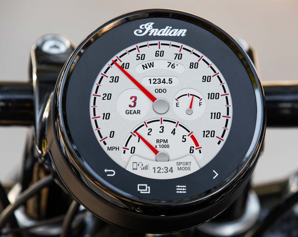 Los detalles de diseño se unen a modernas características con el monitor de 4", líder del sector, gestionado por RIDE COMMAND. Proporciona navegación GPS, conectividad Bluetooth®, estadísticas de viaje y mucho más para mejorar tu experiencia de conducción. Aún mejor, incorpora el RIDE COMMAND+ preinstalado que ofrece Localizador de Moto, estado de Salud de la Moto y más cosas, de forma que puedas estar conectado e informado (las características y la conectividad pueden variar por países).